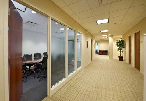 - Added custom, cherry wood millwork and trim in the lobby, along with vinyl wall coverings and full-height glass walls.