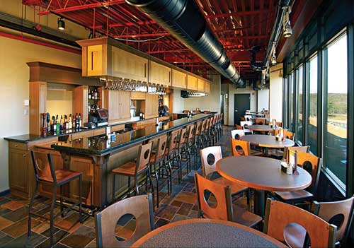 - The team from L.R. Costanzo, with the help of the millwork vendor, designed and fabricated the “Coors Light Lounge,” a bar/lounge area complete with a custom wood wet bar and associated custom wood cabinets, granite top, hanging glass racks, and ornate brass foot rail. The design merged the country “feel” of the existing building with the contemporary “look” of the new additions.