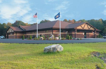 L.R. Costanzo constructed this attractive full-service police headquarters which includes a fitness center, sleeping quarters, detention cells, and a complete forensic evidence processing laboratory. The structure is wood frame with striking wood trusses and brick exterior.